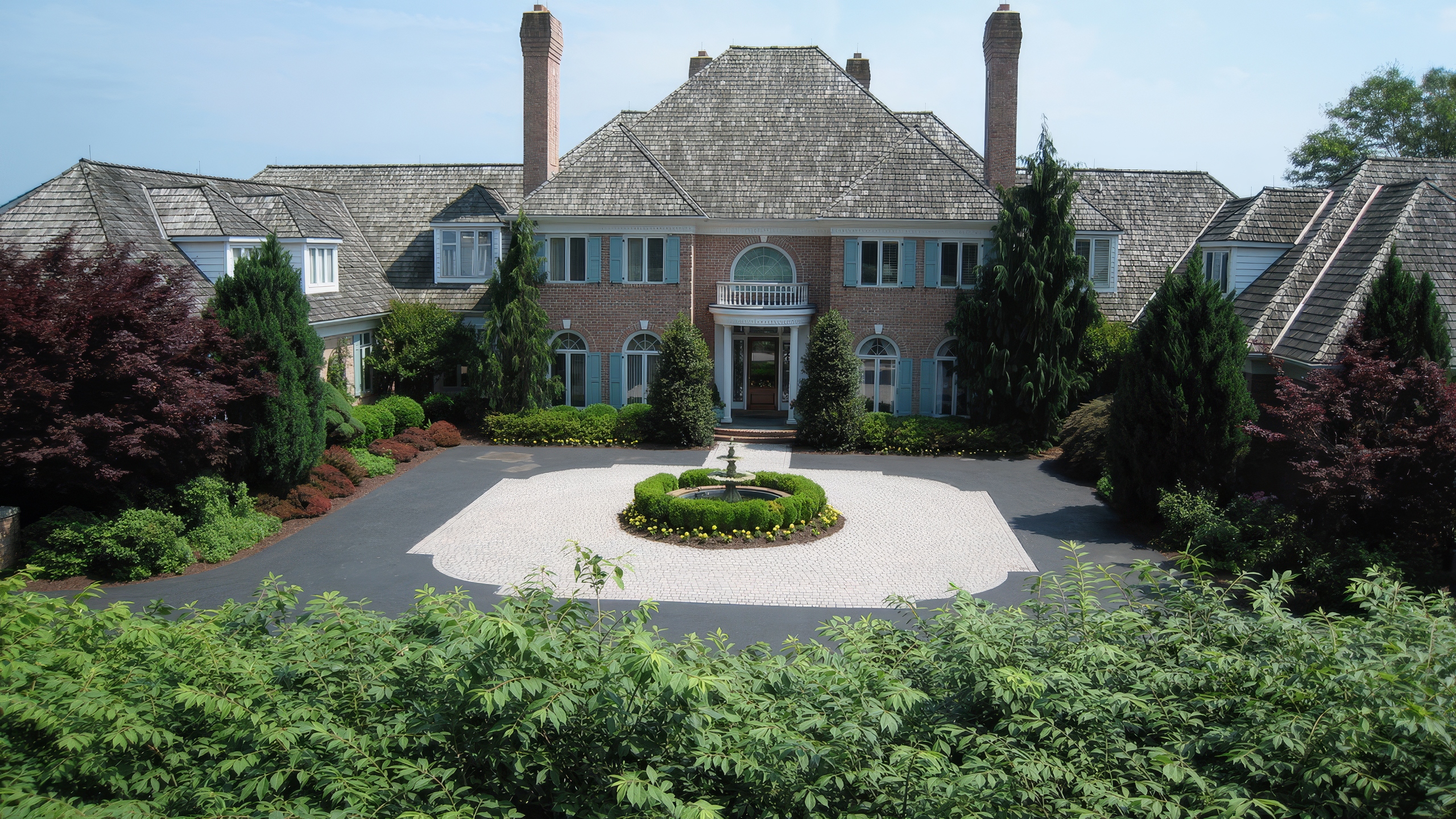 At 18,000 square feet, this brick estate on 40 acres has the aesthetic of a French chateau with the modern amenities of a high-performance home. We incorporated six fireplaces with a pleasing, high-chimney symmetry in the roofline and grand, two-story ceilings in public spaces. This home includes a wing devoted to an indoor pool, a room specifically designed for collectibles, two interior garages, and a cozy and private kitchen.